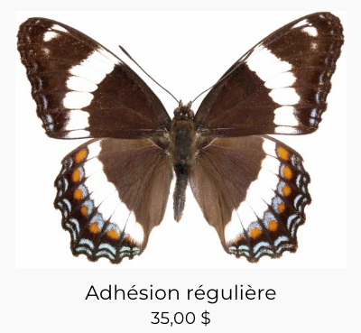 Adhésion soutenant généreusement nos activités, la conservation des invertébrés et la diffusion des connaissances.