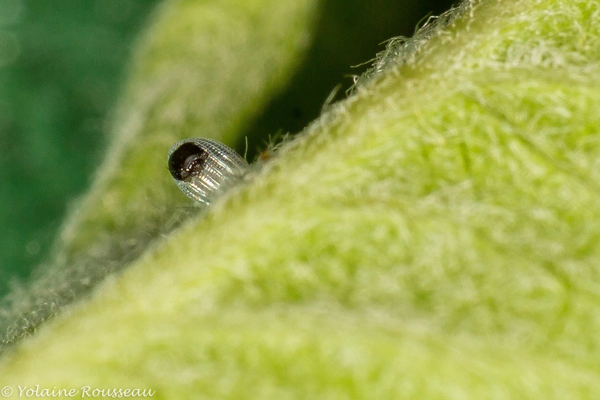 L'apparition d'un minuscule point noir au sommet de l'œuf, correspond à la tête de la petite chenille. C’est le signe qui indique que la chenille est sur le point d’émerger de l’œuf.